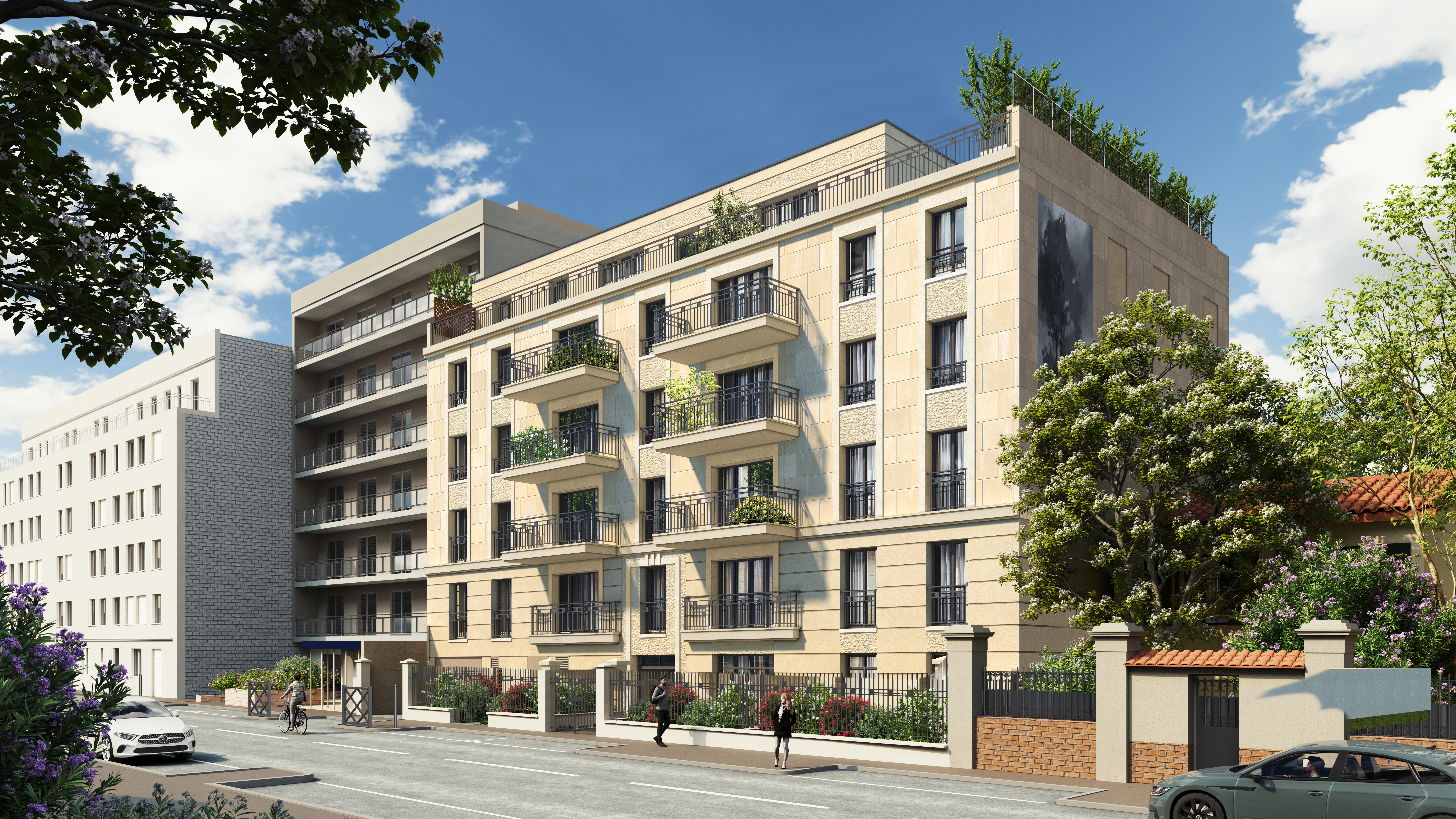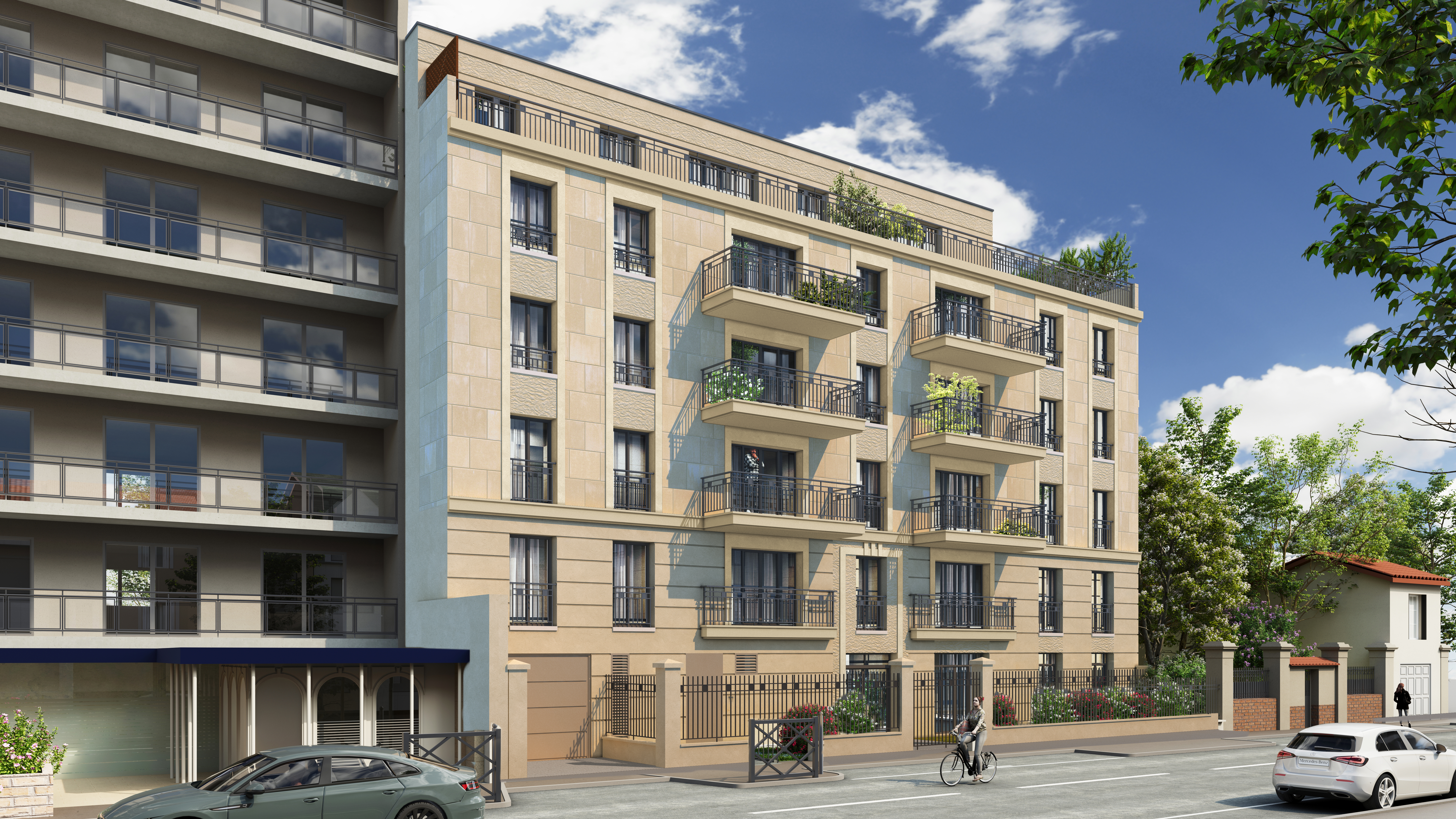 La belle architecture de style « Art Déco » de la résidence est une signature de Cédric Vigneron & Corda Architecture. LIVRAISON T4 2027.